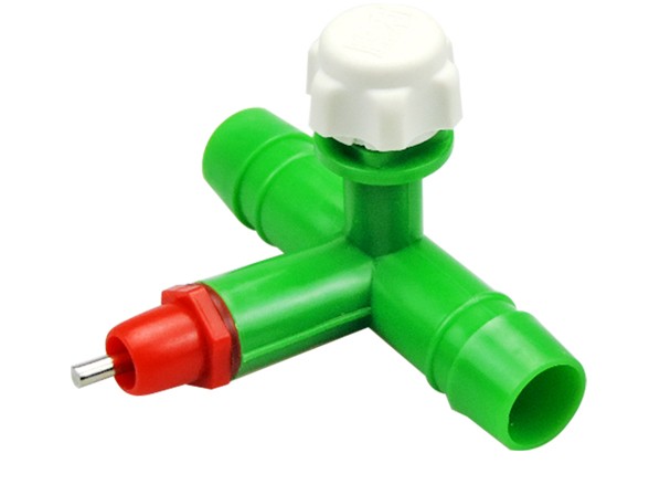 The green three-way chicken feeders and waterers nipple drinker is made of high-grade stainless steel, plastic wear-resistant polyformaldehyde resin, ABS engineering materials, convenient installation and disassembly, cleaning, eliminating glue, paste costs.